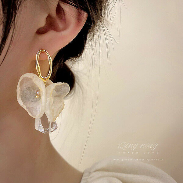 【蝶々イヤリング】ハンドメイド オリジナルアクセサリー マスク 布マスク ビジュー ドイツ製アクリル スワロフスキー シャイニーパール レディースイヤリング レディースピアス プレゼント ギフト 人気 トレンド 浴衣 夏