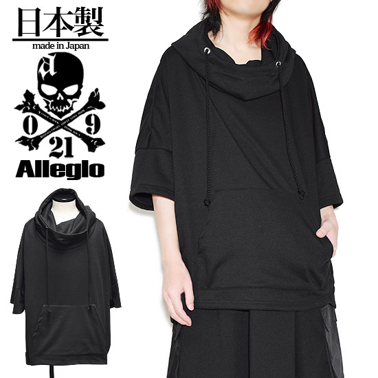 パーカー メンズ Tシャツ 変形 ドルマンパーカー ビックカットソー ボリュームネック ドレープネック ブラック 黒 フード お兄系 V系 ヴィジュアル系 ファッション ホスト 2021 春 夏 新作 30代 40代 個性的 モード系 パーカー ストリート系 衣装 Allegro アレグロ ブランド