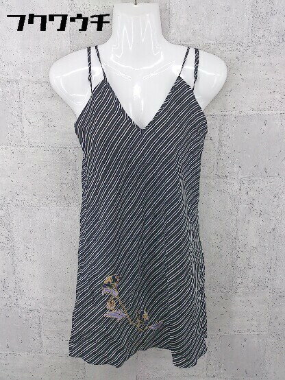 ◇ CARVEN シルク100% レジメンタルストライプ キャミソール ミニ ワンピース サイズ36 ブラック ホワイト レディース 【中古】